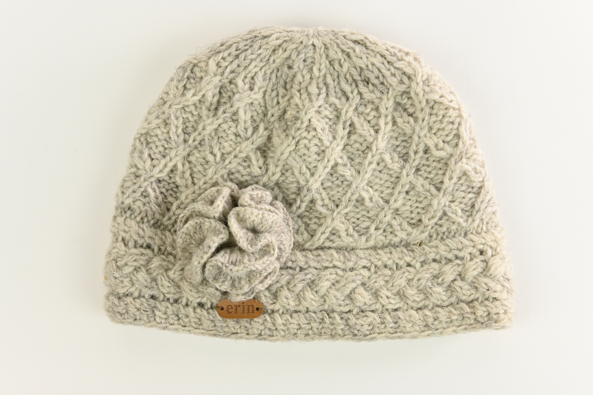 PK1640 Aran Trellis Pullon with Flower Oatmeal