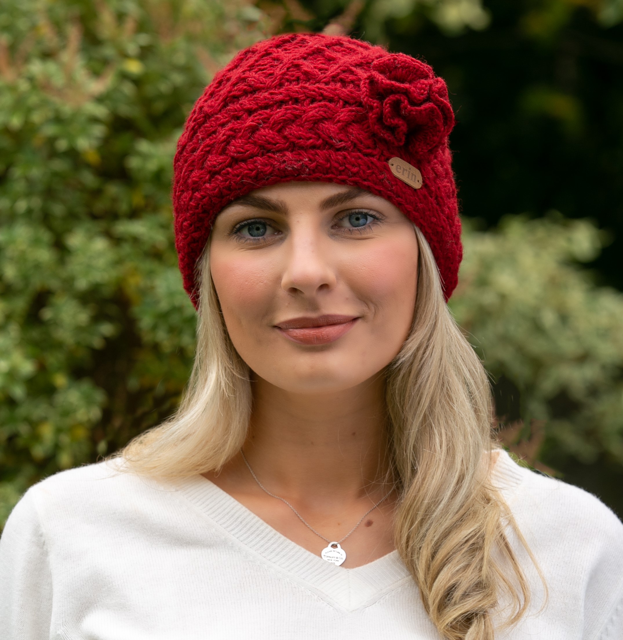 PK1640 Aran Trellis Pullon Hat Red Lifestyle